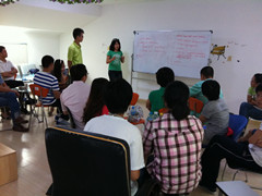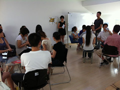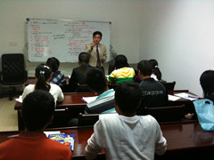 英语爱好者们认真地听老师讲课